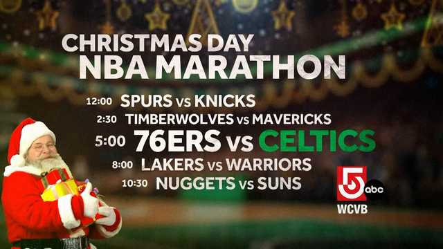 11+ mon, 1+ week ago (66+ words) It's a Christmas Day NBA marathon on WCVB Channel 5! We've got FIVE games back-to-back, including your Boston Celtics! The action starts at noon. Search location by ZIP code Christmas Day NBA Marathon on WCVB Channel 5 It's a Christmas Day NBA marathon on WCVB Channel 5! We've got FIVE games back-to-back, including your Boston Celtics! The action starts at noon....